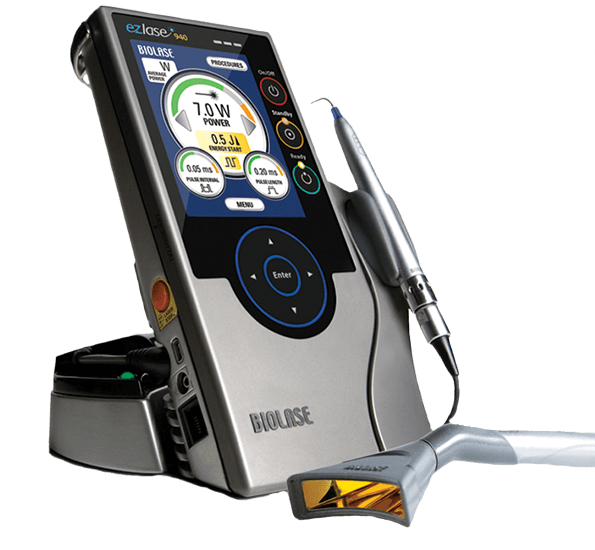 We use a laser for dental procedures involving the soft tissues in your mouth such as gums, cheeks and lips. Laser dentistry (a.k.a. LANAP Therapy) means these dental procedures are pain-free and healing times are significantly shorter when compared to the same procedure being done with a scalpel.